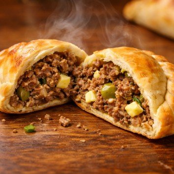 | Carne, cebolla, huevo, morrón y condimentos suaves. |