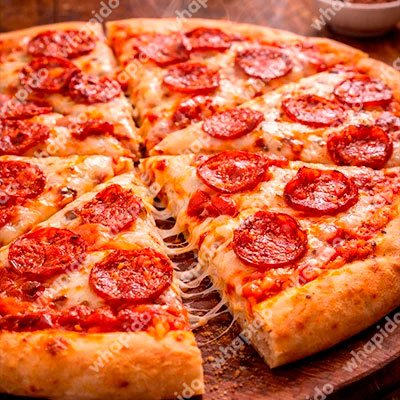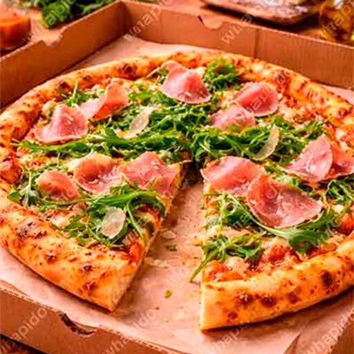 | Muzzarella, jamón, tomate, ajo, salsa de tomate y orégano. |